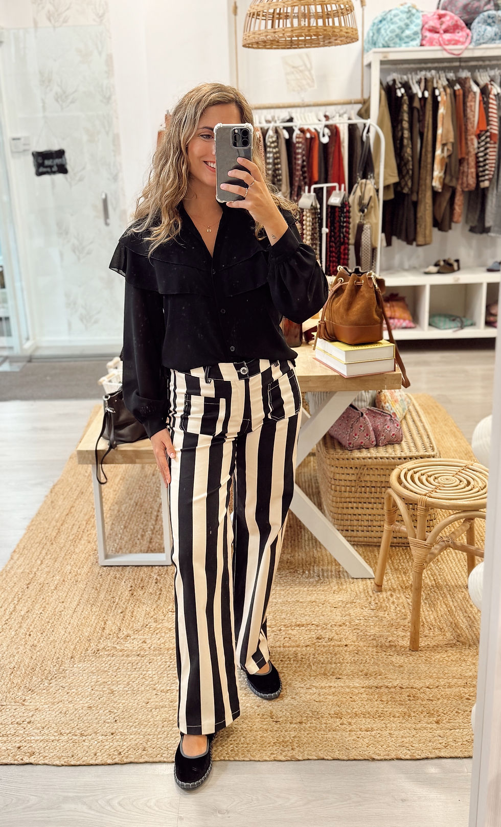 Blusa de viscosa con cuerpo fruncido tan tendencia.